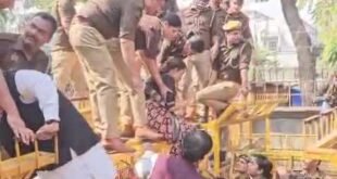 लखनऊ में कांग्रेस ऑफिस के बाहर कार्यकर्ताओं और पुलिस की …