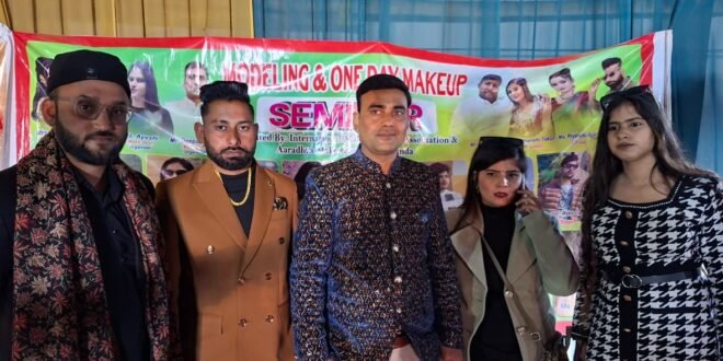 नानौता सहारनपुर। शामली सहारनपुर नेशनल हाईवे स्तिथ सहगल होटल में एक दिवसीय मोडलिंग एंड वन डे मेकअप सेमीनार का आयोजन आराध्या मेक ओवर जडौदा पांडा द्वारा नेहा धीमान.रिया.आयुषी राणा.दीपक सैनी के सोजन्य से धूमधाम तरीके से आयोजित किया गया.जोकि मॉडल व मेकअप सिर्फ युवतियों के लिए ही आयोजित किया गया.आयोजित कार्यक्रम में देहरादून शामली.सहारनपुर.मुज़फ्फरनगर.दिल्ली.सहित अन्य शेहरों से मॉडल कलाकारों व मेकअप आर्टिस शामिल हुए.देर शाम तक चले सेमीनार में शामिल हुए कलाकारों ने एक से बढ़कर एक प्रदर्शन किया जिसमे उनको बेहतर प्रदर्शन के लिए आकर्षक पुरुष्कार से सम्मानित किया गया,सेमीनार के आयोजको द्वारा जानकारी देते हुए बताया गया है कि हमारे द्वारा प्रतिभाओं के लिए भारत सरकार द्वारा मान्यता प्राप्त सर्टिफिकेट दिया जाता है आयोजित सेमीनार में युवतियां मेकअप करना सीखती है और सिखाती भी है जिसके लिए हम उनको उनकी योग्यता पर पुरुष्कार व सर्टिफिकेट देते है जिससे वह समाज में अपना नाम व काम कर सकती है मॉडल के लिए हमने काम्पीटिशन रखा है जिससे वह यहा से आगे बढ़कर अच्छे मॉडल बन कामयाबी तक पहुंच सकते है हमारी संस्था द्वारा प्रत्येक तीन महा बाद अलग अलग शेहरों में सेमीनार आयोजित किया जाता है।