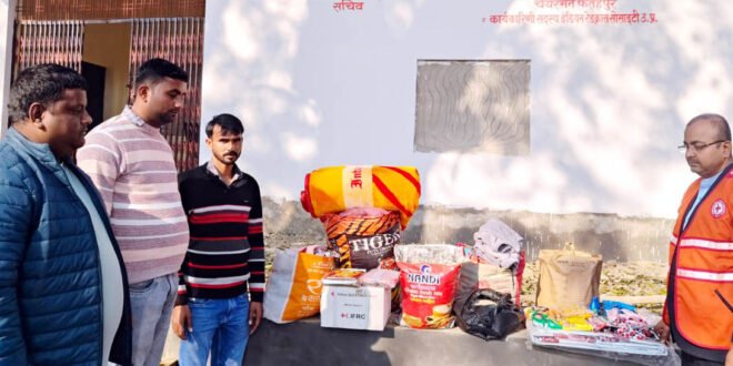 फतेहपुर। कोर्राकनक भूप सिंह का डेरा में एक अग्निकाण्ड पीड़ित परिवार को रेडक्रास सोसाइटी के चेयरमैन एवं प्रदेश कार्यकारिणी सदस्य डा. अनुराग श्रीवास्तव ने खाद्य सामग्री सौंपी और हरसंभव मदद का भरोसा दिलाया। खाद्य सामग्री पाकर पीड़ित परिवार ने रेडक्रास चेयरमैन का आभार जताया। बताते चलें कि रवींद्र परमार एडवोकेट ने सोशल मीडिया में पोस्ट डाली थी कि अग्निकाण्ड पीड़ित परेशान है। पोस्ट का संज्ञान लेते हुए इंडियन रेडक्रास सोसाइटी के जिला चेयरमैन व कार्यकारिणी सदस्य कोर्राकनक भूप सिंह डेरा पहुंचे। जहां ननकऊ सिंह के घर जाकर पड़ोसी संजय सिंह की सहायता पहुंचाने का काम किया। डॉ अनुराग ने खाद्य सामग्री 10 किलो आटा, बिस्कुट, नमकीन, रस्क, हल्दी, धनिया, मिर्च, नमक, पांच किलो चावल, तिरपाल, 30 बर्तनों का किचन सेट, कंबल, एक सैकड़ा कपड़े, 10 नहाने की साबुन, 10 कपड़े धुलने की साबुन, 10 टूथपेस्ट, 8 टूथब्रश ,2 बालों में लगाने का तेल, 4 रेजर इत्यादि वस्तुएं प्रदान कर अल्प सहायता की गई। इस अवसर पर अभिनव श्रीवास्तव संयोजक होमियोपैथिक केमिस्ट प्रकोष्ठ, चैतन्य कुमार संयोजक दिव्यांग प्रकोष्ठ इंडियन रेडक्रास सोसाइटी, आजीवन सदस्य प्रेमचंद्र मौर्य, हिमांशु श्रीवास्तव उपस्थित रहे।