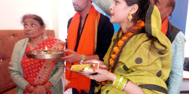 – पूजा-अर्चना करते गेस्ट हाउस के मालिक।