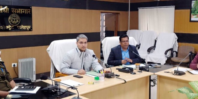– बैठक में भाग लेते डीएम रविन्द्र सिंह।