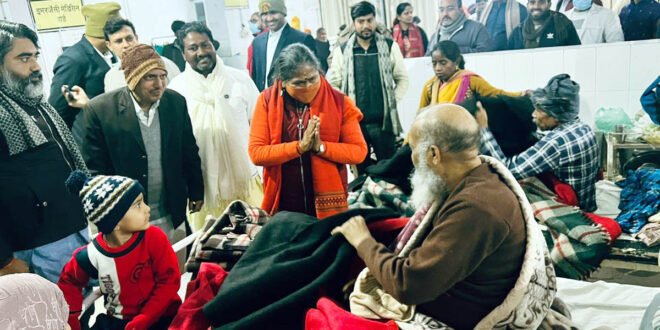पूर्व केन्द्रीय राज्यमंत्री साध्वी निरंजन ज्योति पार्टीजनों संग जिला अस्पताल पहुंची। जहां उन्होने महिला, पुरूष व शिशु वार्ड में भर्ती मरीजों के बीच कंबल वितरण किया। इसी तरह हथगाम सामुदायिक स्वास्थ्य केन्द्र पहुंचकर भी उन्होने 25 मरीजों को कंबल दिए। कुल 125 मरीजों को कंबल वितरण किया गया। कंबल वितरण के दौरान मुख्य चिकित्सा अधीक्षक राजेश कुमार के अलावा अन्य चिकित्सक भी मौजूद रहे। पूर्व मंत्री ने सभी मरीजों के स्वास्थ्य लाभ की कामना करते हुए जिला अस्पताल प्रशासन का आहवान किया कि मरीजों के इलाज में कोताही न बरती जाए। उनका समुचित इलाज किया जाए। साथ ही मरीजों के साथ अच्छा व्यवहार किया जाए। केन्द्र व प्रदेश सरकार की लाभकारी योजनाएं चल रही है। जिनका लाभ मरीजों को दिलाया जाए। इस मौके पर शिव प्रकाश त्रिपाठी, शिव प्रताप सिंह, राजेंद्र निषाद, रघुवीर लोधी, संजय सिंह, आनंद मान सिंह, गौरव अग्रहरि, जोगेंद्र सिंह के अलावा काफी संख्या में कार्यकर्ता मौजूद रहे।