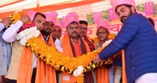 प्रदेश अध्यक्ष बनने के बाद पंकज चौधरी का प्रथम अयोध्या आगमन, विधायक चन्द्रभानु पासवान ने रौनाही टोल प्लाजा पर किया ऐतिहासिक स्वागत अयोध्या। प्रदेश अध्यक्ष बनने के बाद भारतीय जनता पार्टी के प्रदेश अध्यक्ष श्री पंकज चौधरी का पहला अयोध्या आगमन ऐतिहासिक और भव्य रहा। इस अवसर पर रौनाही टोल प्लाजा पर ढोल-नगाड़ों की गूंज, फूल-मालाओं की वर्षा और गगनभेदी नारों के बीच उनका जोरदार स्वागत किया गया। पूरा क्षेत्र भगवामय वातावरण में सराबोर नजर आया। प्रदेश अध्यक्ष के स्वागत कार्यक्रम का नेतृत्व विधायक श्री चंद्रभानु पासवान ने किया। उन्होंने अपने हजारों समर्थकों के साथ रौनाही टोल पर 501 किलो पुष्पों की वर्षा कर श्री पंकज चौधरी का भव्य अभिनंदन किया।