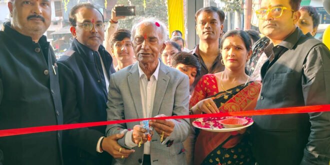 – शोरूम का फीता काटकर शुभारंभ करते समाजसेवी संतोष कुमार।