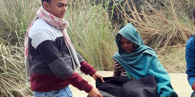 जरूरतमंद महिला को कंबल देते समिति के संस्थापक।