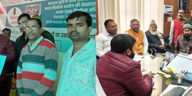 – एसडीएम को ज्ञापन सौंपते गर्ग गुट के पदाधिकारी एवं एसडीएम से वार्ता करते व्यापार मंडल के अध्यक्ष।