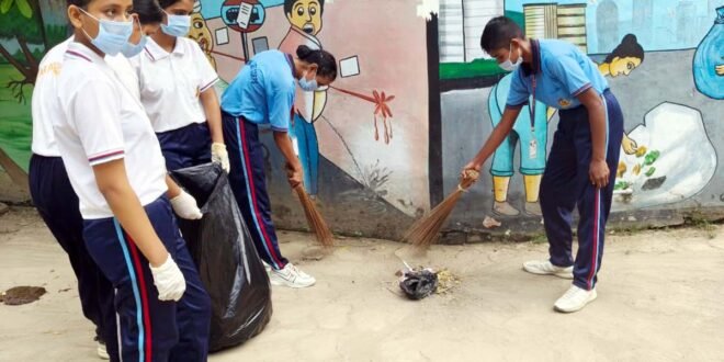 –  स्वच्छता अभियान चलाते एनसीसी कैडेट्स।