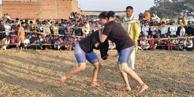 कमासिन, बांदा । क्षेत्र पंचायत के कस्बा बेर्राव के खेल मैदान में विशाल दंगल प्रतियोगिता का आयोजन किया गया जिसमें महिला पुरुष पहलवानों का जमावड़ा रहा सभी ने अपने-अपने दांव पेंच दिखाकर जीत हासिल कर वाहवाही लूटी प्रतियोगिता के मुख्य अतिथि सपा०विधायक विशम्बर सिंह यादव एवं विशिष्ट अतिथि किरण यादव, जिला पंचायत सदस्य इंद्रजीत यादव के साथ अखाड़े में बजरंगबली की पूजा कर फीता काटने के उपरांत दंगल शुभारंभ की घोषणा आयोजक राम प्रताप यादव पूर्व प्रधान राम मूरत यादव के साथ की। दंगल प्रतियोगिता में अपनी कुश्ती कला का प्रदर्शन करने बुंदेलखंड सहित रायबरेली मैनपुरी हरियाणा पंजाब राजस्थान कानपुर प्रयागराज वाराणसी कौशांबी हाथरस से आए महिला एवं पुरुष पहलवानों का जमघट लगा दंगल समिति द्वारा विजयी पहलवानों को आकर्षक प्रोत्साहन राशि प्रदान कर उत्साहवर्धन किया गया। दंगल की पहली कुश्ती जोमी यादव सैफई और संतोष पहलवान राजस्थान का हाथ मिलाकर मुख्य अतिथि ने कुश्ती प्रारंभ कराई जिसमें जोमी सैफई ने राजस्थान के संतोष पहलवान को चारों खाने चित कर दिया। कौशांबी के संतोष पहलवान ने संजय फतेहगढ़ को अपने कुशलदांव पेंच से चित कर दिया। महिला पहलवान पूनम इटावा ने पुरुष पहलवान राजू जालौन को कड़े मुकाबले में पटक कर जीत दर्ज की।बादल रायबरेली और बुधराज मरका के बीच कडा संघर्ष देखने को मिला। वहीं महिला पहलवान सौम्या झांसी को नेहा दिल्ली ने पछाड़ा संतोषी कानपुर ने आकांक्षा दिल्ली को पराजित किया पुनः पूनम इटावा ने मुस्कान कानपुर से जीत हासिल की इसी क्रम में महिला पहलवान खुशी कानपुर ने सरिता राजस्थान को कड़े संघर्ष में हराकर जीत दर्ज की ।वही नकाब पहलवान ने हनुमानगढ़ी के पहलवान को हराया धर्मवीर मथुरा ने साजन झींझक को पटका मोहन हाथरस को चीता पहलवान ने कड़े संघर्ष में पराजित किया ।क्षेत्रीय पहलवान रिंकू अरमार ने साजन झींझक को हराया लक्ष्मण दास अयोध्या धाम ने कालू पहलवान नागालैंड को कलाजंग दांव लगाकर चित्त कर दिया ।दंगल प्रतियोगिता में आए जोमी पहलवान इटावा ने नवयुवकों को नशा खोरी छोड़कर शरीर बनाकर पहलवान बनने का आवाहन किया। तो बबेरू विधायक ने अपने संबोधन में कहा कि दंगल बुंदेलखंड की शान है नाग पंचमी के शुभ मुहूर्त से दंगल प्रतियोगिता का आयोजन बुंदेलखंड में प्रारंभ हो जाता है क्षेत्र का नाम रोशन करने के लिए नवयुवक बालक बालिकाएं कुश्ती प्रतियोगिता में शामिल होने से देश और क्षेत्र का नाम रोशन होता है यह बड़े गौरव की बात है मैं सभी के उज्जवल भविष्य की कामना करता हूं। दंगल आयोजक राम प्रताप यादव ने कहा कि कई वर्षों से लगातार पूर्वजों की देन पर दंगल का आयोजन सभी के सहयोग से किया जा रहा है दंगल प्रतियोगिता 