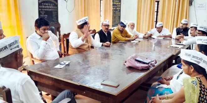 – बैठक करते आम आदमी पार्टी के पदाधिकारी।