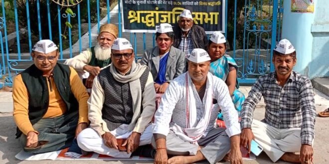 फतेहपुर। राज्यसभा सांसद एवं प्रदेश प्रभारी संजय सिंह के आह्वान पर मोदी के चुनावी घोटाले को उजागर करने व बीएलओ को श्रद्धांजलि देने हेतु आम आदमी पार्टी के जिलाध्यक्ष रंजीत कुमार मौर्या के नेतृत्व में अंबेडकर पार्क कलेक्ट्रेट में श्रद्धांजलि सभा का आयोजन किया। जिसमें उपस्थित पार्टी कार्यकर्ताओं ने दिवंगत बीएलओ को श्रद्धांजलि दी। वक्ताओं ने कहा कि मोदी सरकार चुनाव आयोग को साथ लेकर बड़ा चुनावी घोटाला कर रहा है। चुनावी घोटाले के चलते ही भाजपा सरकार बना रही है। जिसे रोकना बेहद जरूरी है। सरकारी कर्मियों पर एसआईआर के नाम पर जबरन दबाव डालकर उनका मानसिक उत्पीड़न कर रहे हैं। जिसके चलते कई बीएलओ ने अपनी जान दे दी। श्रद्धांजलि सभा में जिला उपाध्यक्ष देवेंद्र सिंह, जिला उपाध्यक्ष राहुल द्विवेदी, महिला प्रकोष्ठ जिलाध्यक्ष माया गौतम, अल्पसंख्यक प्रकोष्ठ जिलाध्यक्ष शेर आलम, महिला प्रकोष्ठ जिला सचिव अंजू प्रजापति, शिव प्रकाश गुप्ता, राजेश चौहान, नसीम मास्टर आदि कार्यकर्ता उपस्थित रहे।