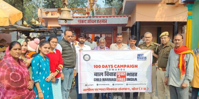 बांदा। पुलिस अधीक्षक जनपद बांदा श्री पलाश बंसल निर्देशन आज दिनांक 18.11.2025 को थाना मानव तस्करी निरोधी इकाई विशेष किशोर पुलिस इकाई चाइल्ड हेल्पलाइन, साथी संस्था, ग्रामीण परम्परा विकास संस्थान आदि की संयुक्त टीम द्वारा शहर क्षेत्र में बाल श्रम व बाल भिक्षावृत्ति के विरुद्ध सघन चेकिंग एवं जागरुकता अभियान चलाया गया । अभियान के दौरान शहर क्षेत्र के संकट मोचन मन्दिर, अशोक लाट, बस स्टैण्ड इत्यादि भीड़-भाड़ व सार्वजनिक स्थानों पर चेकिंग की गई । अभियान के दौरान लोगों को बाल भिक्षावृत्ति, बाल श्रम आदि न कराने हेतु जागरुक किया गया । बस स्टैंड पर मौजूद यात्रियों को मानव तस्करी, बाल श्रम/बाल भिक्षावृत्ति, बच्चा चोरी, जहर खुरानी आदि की सूचना विभिन्न हेल्पलाइन नंबरों- चाइल्ड हेल्पलाइन नम्बर 1098, डायल यूपी-112, या मानव तस्करी निरोधी इकाई के सीयूजी नम्बर-7839862477 पर दें । साथ ही यात्रियों को पंपलेट के माध्यम से बाल विवाह न करने एवं गांव/मोहल्ले में यदि कोई बाल विवाह हो रहा हो तो इसकी सूचना सरकारी हेल्पलाइन नंबर अथवा नजदीकी पुलिस स्टेशन पर सूचित करने की सलाह दी गई, बच्चों के साथ सफर कर रहे यात्रियों को बच्चों को अपने पास रखने एवं अनजान व्यक्ति द्वारा दी गई किसी भी सामग्री को ना खाने की सलाह दी गई । स्टेशन रोड पर मौजूद दुकान/होटल पर बालश्रम आदि के विरुद्ध अभियान चलाया, अभियान के दौरान दुकान/होटल आदि की चेकिंग की गई एवं आसपास के दुकानदारों एवं आम जनमानस को बच्चों (18 वर्ष से कम आयु) से बाल श्रम न कराने हेतु जागरूक किया गया एवं हिदायत दी गई कि यदि कोई व्यक्ति/दुकानदार बच्चों से बाल श्रम करते हुए पाया गया तो उपरोक्त व्यक्ति/दुकानदार के विरुद्ध नियमानुसार आवश्यक कार्यवाही की जाएगी । संकट मोचन मंदिर पर श्रद्धालुओं को बाल श्रम एवं बाल विवाह के संबंध में जागरूक किया गया तथा परिजनों को बच्चों को स्कूल भेजने की सलाह दी गई । अभियान के दौरान थाना प्रभारी एएचटीयू निरीक्षक श्री विजय सिंह, उ0नि0 श्री अनिल कुमार उपाध्याय, आरक्षी प्रशांत यादव, महिला आरक्षी स्वेतलाना मौर्य,चाइल्ड हेल्पलाइन बांदा से शिव संपत यादव एवं ग्रामीण परंपरा विकास संस्थान बांदा से शिवम यादव आदि मौजूद रहे ।
