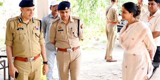 – परीक्षा केन्द्र का जायजा लेते एडीजी व डीएम-एसपी।
