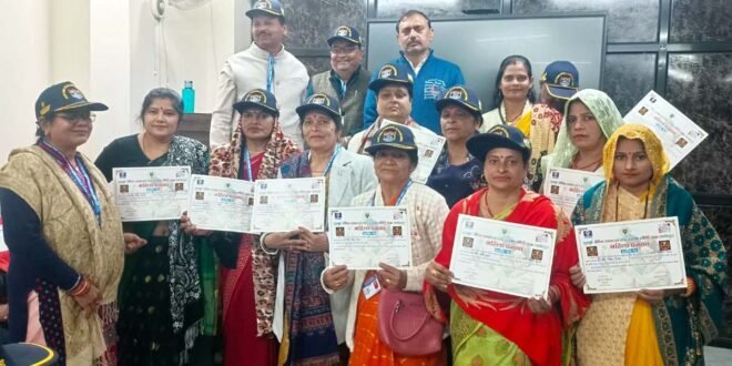 – प्रशस्ति पत्र देकर सम्मानित करतीं महिला अध्यक्ष जागृति तिवारी।