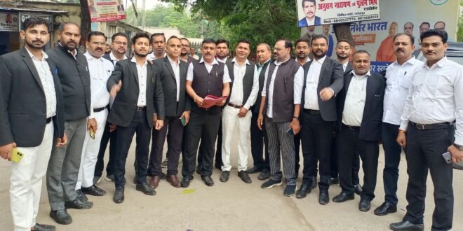 – कलेक्ट्रेट पर प्रदर्शन करते अधिवक्ता।