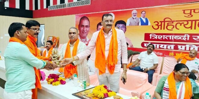 फतेहपुर। पुण्यश्लोक अहिल्याबाई होल्कर त्रिशताब्दी स्मृति अभियान के अन्तर्गत पंचायत प्रतिनिधि सम्मेलन सोमवार को प्रेक्षागृह में आयोजित किया गया जिसमें मुख्य वक्ता के रूप में जिले के प्रभारी मंत्री अजीत पाल उपस्थित रहे। श्री पाल ने लोकमाता द्वारा तीन सौ वर्ष पूर्ण किये गये लोककल्याण की चर्चा की। उन्होंने कहा कि उनके द्वारा पर्यावरण संरक्षण को लेकर विभिन्न कार्यक्रमों द्वारा सड़क निर्माण के साथ ही वृहद वृक्षारोपण कराया गया। राहगीरों को पीने के पानी की सुचारू ढंग से उपलब्ध हो इसके लिए कुंए बावड़ियों का निर्माण किया गया। जमीनी विवादों से मुक्ति के लिए खसरा व्यवस्था को लेकर कार्य किये गये। लोकमाता अहिल्याबाई होलकर द्वारा मातृशक्ति को सशक्त बनाने को लेकर समूह के माध्यम से शक्ति प्रदान की गई। प्रधानमंत्री नरेंद्र मोदी ने लोकमाता अहिल्याबाई होल्कर के कार्यों को पथ मान कर देश को आगे ले जा रहे हैं। कार्यक्रम के जिला संयोजक व जिला पंचायत अध्यक्ष अभय प्रताप सिंह ने पुण्यश्लोक अहिल्याबाई होलकर द्वारा देश भर में किये गये धार्मिक जीर्णाेद्धार पर विचार रखे। श्री सिंह ने बताया कि काशी विश्वनाथ मंदिर, बैजनाथ धाम कालेश्वर महादेव मंदिर सहित देशभर में मंदिरों को जिनको आततायियों द्वारा विध्वंस किया गया था। उनका जीर्णाेद्धार के साथ ही पुनरोद्धार कराया गया। उनके द्वारा सामाजिक कुरीतियां सतीप्रथा पर कठोर आपत्ति जताई गई। कार्यक्रम में उपस्थित जिलाध्यक्ष मुखलाल पाल ने लोकमाता के मालवा क्षेत्र के साथ ही सम्पूर्ण देश में किये गये लोककल्याण पथ पर अग्रसर होना है। श्री पाल ने कार्यक्रम में उपस्थित ब्लाक प्रमुखों जिला पंचायत सदस्यों व क्षेत्र पंचायत सदस्यों का आभार व्यक्त करते हुए कहा कि अहिल्याबाई होलकर के प्रेरणादायक जीवनकाल से बहुत कुछ सीखने को मिलता है। जिला संयोजक पुष्पराज पटेल, सम्मेलन के सह संयोजक व जिला पंचायत सदस्य ओम मिश्रा, जिला महामंत्री उदय लोधी, नीरज सिंह, जिला मीडिया प्रभारी प्रवीण कुमार सिंह, जिला पंचायत सदस्य अजय सिंह रिंकू लोहारी, ब्लाक प्रमुख अमित तिवारी, संतोष द्विवेदी, अतुल त्रिवेदी, जिला पंचायत सदस्य प्रतिनिधि शिवप्रताप सिंह मंडरांव, मुन्ना सिंह खेसहन, दीपक द्विवेदी, अवनीश मौर्य सहित बड़ी संख्या में जिला पंचायत सदस्य, ब्लाक प्रमुख व पंचायत प्रतिनिधि उपस्थित रहे।