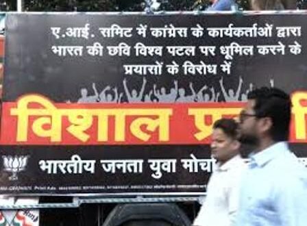 कांग्रेस के AI समिट में हंगामा करने के विरोध में भाजपा शनिवार को दिल्ली, महाराष्ट्र, गुजरात और जम्मू-कश्मीर में प्रदर्शन कर रही है। दिल्ली में कांग्रेस कार्यालय के बाहर भाजपा युवा मोर्चा के कार्यकर्ता ‘कांग्रेस-राहुल गांधी=गद्दार’, ‘देशद्रोही राहुल गांधी माफी मांगे’ के पोस्ट लेकर विरोध कर रहे हैं। उधर, मुंबई के मुलुंड में भाजपा कार्यकर्ताओं ने राहुल गांधी के काफिले को काले झंडे दिखाए। वे यहां से भिवंडी जा रहे थे। 2014 के लोकसभा चुनाव प्रचार के दौरान RSS पर की गई विवादित टिप्पणी के मामले में भिवंडी कोर्ट में शनिवार को उनकी पेशी थी। गुजरात के सूरत में भाजपा कार्यकर्ताओं ने विरोध प्रदर्शन के दौरान कांग्रेस का पुतला जलाया। जम्मू-कश्मीर में भी भाजपा कार्यकर्ताओं ने विरोध जताया।