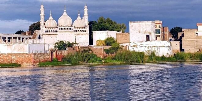– कूंड तालाब पर बनी ईमारतों का दृश्य।