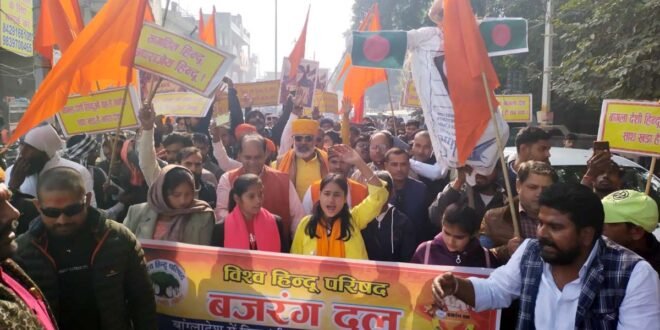 – हिंदूवादी संगठनों ने बांग्लादेश सरकार का पुतला फूंका