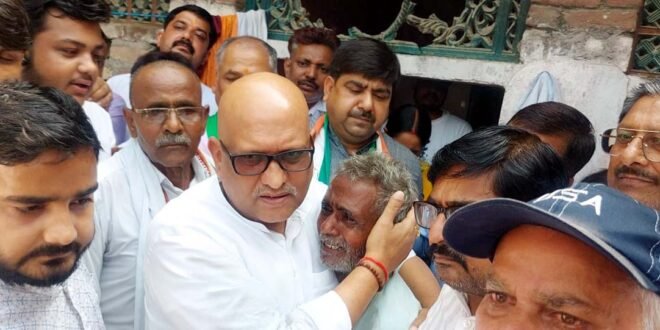 – मृतक युवक के पिता को गले लगाकर ढाढंस बंधाते कांग्रेस प्रदेश अध्यक्ष अजय राय।