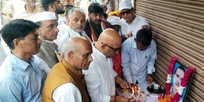 – मृतक हरिओम बाल्मीकि के चित्र पर पुष्प अर्पित करते कांग्रेस प्रदेश अध्यक्ष अजय राय।