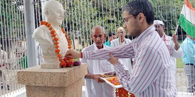 – गांधी प्रतिमा पर माल्यार्पण करते डीएम रविन्द्र सिंह।