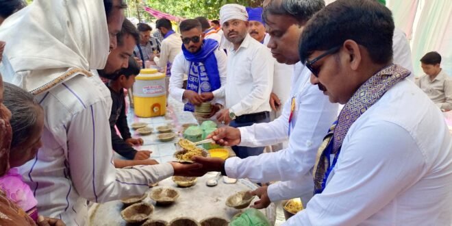 – कलेक्ट्रेट परिसर में तहरी वितरित करते आयोजक।