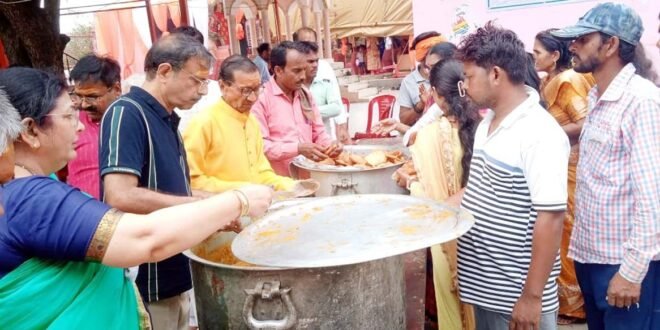 भंडारे का प्रसाद ग्रहण करते श्रद्धालु।