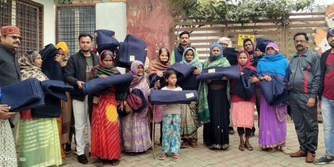 जरूरतमंदों को कंबल वितरित करते समिति के पदाधिकारी।