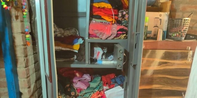 सुबह जब पीड़ित दंपति की नींद खुली, तो उन्होंने घर का दरवाजा टूटा हुआ पाया। अंदर जाकर देखने पर अलमारी और संदूक टूटे हुए थे और सामान बिखरा पड़ा था। पीड़ित के अनुसार, चोरी गए सामान में लगभग ₹30,000 नगद, चांदी के आभूषण (बिछुआ, पायल, चैन, सिक्के), सोने के आभूषण (चैन, झुमकी, बाला, मंगलसूत्र), लगभग 10 किलो देसी घी और करीब 25 नई साड़ियां शामिल हैं। चोरी गए सामान की कुल अनुमानित कीमत लगभग ₹6 लाख बताई जा रही है।