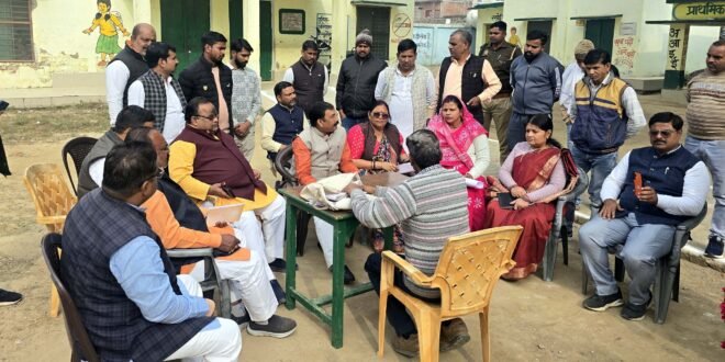 फतेहपुर। रविवार को भारतीय जनता पार्टी के प्रदेश मंत्री शंकर गिरि ने खागा स्थित ठा. दरियाव सिंह सभागार में गहन मतदाता पुनरीक्षण कार्यक्रम एसआईआर अभियान की जिला टोली के साथ बैठकर समीक्षा की। जिसमें विधानसभावार अब तक के कार्य प्रगति को जांचा परखा। वहीं आगे संगठन की मंशानुरूप योजनाओं पर कार्यकर्ताओं को लगने के दिशा-निर्देश दिए। श्री गिरि ने कहा कि अब हमें और भी सजगता से इस राष्ट्रीय कार्य में सार्थक योगदान देना है। वह खागा विधानसभा क्षेत्र के बूथ संख्या 50 बहादुर भी गये। जहां उपस्थित बीएलओ से बूथ पर किये गये कार्य विषय पर विमर्श किया गया। साथ में उपस्थित स्थानीय विधायक कृष्णा पासवान ने बीएलओ से कहा कि जहां भी उन्हें हमारे सहयोग की आवश्यकता हो बतायें। भाजपा कार्यकर्ता सकारात्मक सहभागिता निभायेंगे। जिलाध्यक्ष अन्नू श्रीवास्तव ने प्रदेश मंत्री शंकर गिरि को आश्वस्त करते हुए कहा कि वर्तमान में संगठन के दिशा-निर्देश पर सभी विधानसभाओं में कार्यकर्ताओं द्वारा मनोयोग से एसआईआर कार्यक्रम में सहयोग दिया जा रहा है और वह अभियान समाप्ति तक जारी रहेगा। जिले की सभी विधानसभा क्षेत्रों में संगठन की मंशानुरूप कार्य समय से सफलतापूर्वक पूर्ण होंगे। इस दौरान बैजनाथ वर्मा, अपर्णा सिंह गौतम, अर्चना त्रिपाठी, उदय लोधी, नीरज सिंह, पुष्पराज पटेल, दुर्गाशंकर गुप्ता, पंकज त्रिपाठी, विमलेश पांडेय, बच्चा तिवारी, विवेक श्रीवास्तव, ओम मिश्रा, धर्मेंद्र सिंह सहित पार्टी पदाधिकारी व कार्यकर्ता उपस्थित रहे।