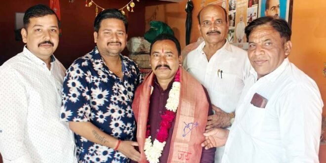 – भाजपा के नवनियुक्त नगर महामंत्री का पटका पहनाकर स्वागत करते पदाधिकारी।