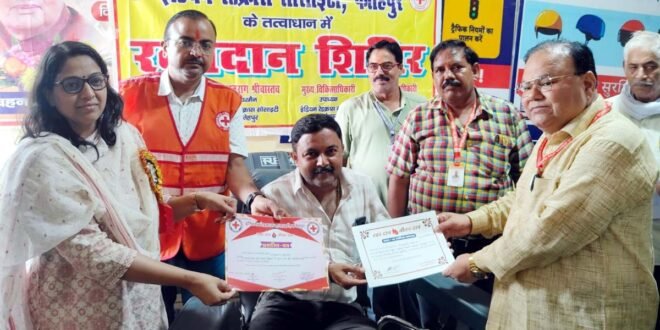 – सीएमओ व एआरटीओ ने शिविर का उद्घाटन कर रक्तदाताआंे को सौंपे प्रशस्ति पत्र
