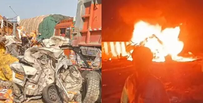 मिर्जापुर में बुधवार रात एक दिल दहला देने वाला सड़क हादसा हुआ, जिसने पूरे इलाके को शोक में डुबो दिया। मिर्जापुर-रीवा नेशनल हाईवे पर रात करीब 9:30 बजे एक तेज रफ्तार ट्रक का ब्रेक फेल हो गया और उसने आगे चल रही बोलेरो और स्विफ्ट कार को जोरदार टक्कर मार दी। टक्कर इतनी जबरदस्त थी कि बोलेरो उछलकर अलग जा गिरी और उसमें तुरंत आग लग गई। आग इतनी भयंकर थी कि उसमें सवार 9 लोग जिंदा जल गए और उन्हें बाहर निकलने का मौका तक नहीं मिल पाया। इस हादसे में स्विफ्ट कार के चालक और ट्रॉले के क्लीनर की भी मौत हो गई। हादसे के बाद मौके पर चीख-पुकार मच गई और पूरे क्षेत्र में अफरा-तफरी का माहौल बन गया।