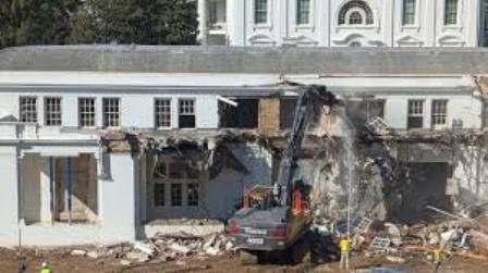 व्हाइट हाउस के ईस्ट विंग में तोड़फोड़ का काम 20 अक्टूबर 2025 को शुरू हुआ, जब निर्माणकर्मी और खुदाई मशीनें (excavators) छत, प्रवेश द्वार और खिड़कियों सहित इमारत के कुछ हिस्सों को गिराते हुए देखे गए. द वॉशिंगटन पोस्ट और सीएनएन समेत कई मीडिया संस्थानों द्वारा साझा की गई तस्वीरों में ईस्ट विंग की बाहरी दीवारों और अंदरूनी हिस्सों को हटाते हुए देखा जा सकता है.