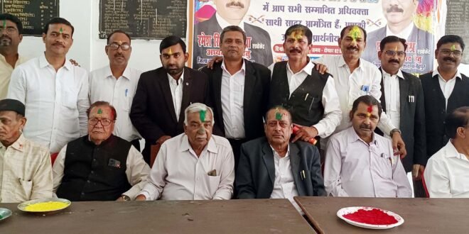 – होली मिलन समारोह में भाग लेते अधिवक्ता।