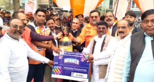 – विजेता टीम को इक्कीस हजार रूपए नगद व ट्राफी देकर किया सम्मानित – विजेता टीम को ट्राफी सौंपते अतिथि। …