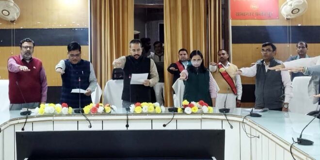 – अधिकारियों व कर्मचारियों को संविधान की शपथ दिलाते सीडीओ पवन कुमार मीना।