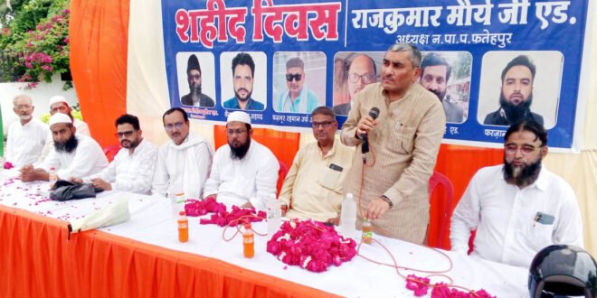 फतेहपुर। शहीद डिप्टी कलेक्टर हिकमतउल्ला खां का 167 वां बलिदान दिवस श्रद्वापूर्वक मनाया गया। डिप्टी कलेक्टर हिकतउल्ला पार्क में शहीद डिप्टी कलेक्टर हिकमउल्ला सेवा संस्थान ने गोष्ठी का आयोजन किया। जिसमें मुख्य अतिथि नगर पालिका अध्यक्ष राजकुमार मौर्य एडवोकेट रहे। अध्यक्षता संस्था के अध्यक्ष मुहीउद्दीन एडवोकेट ने की। मुहीउद्दीन एडवोकेट ने बताया कि जनपद के आजादी के इतिहास में डिप्टी कलेक्टर हिकमतउल्ला खागा के दरियांव सिंह व उनके पुत्र सुजान सिंह बिन्दकी के जोधा सिंह अटैया, जमरावां के शिवदयाल सिंह रघुवंशी, कोराई के गयादीन दुबे की मुख्य भूमिका थी। आजादी के मतवालों के अवाहन पर तत्कालीन डिप्टी कलेक्टर हिकमतउल्ला ने जेल का ताला खोल दिया और सारे कैदियों को आजाद कर दिया। 10 जून सन् 1857 को आजादी के मतवालों ने पूरे शहर पर कब्जा कर लिया। नाना साहब के स्वतंत्रा पर बहुत प्रभावित हुए। हिकमतउल्ला साहब को फतेहपुर का शासक कलेक्टर (चकलेदार) नियुक्त किया। 12 जुलाई 1857 ई० को मेजर हैवलाक व मेजर रेनाल्ड की संयुक्त सेनाओं ने घमाशान युद्ध के बाद हसवां और बिलन्दा के देशद्रोहियों के मुखबिरी पर हिकमतउल्ला को गिरफ्तार कर लिया गया और बिना मुकदमा चले कोतवाली फतेहपुर गेट पर उनको फांसी दे दी गयी। हिकमतउल्ला ने 32 दिन की आजाद हुकुमत कायम की थी। कैप्टन गुलशाद अहमद ने कहा कि देश के आजादी के मतवालों की कुर्बानी से ही अपना देश आजाद हुआ है और देश के गद्दारों से बहुत हानि हुई है। फजरूल रहमान उर्फ असलम मास्टर ने युवा पीढ़ी को अवाहन किया कि रणबांकुरो तथा शहीदों के बलिदान से प्रेरणा लें। गोष्ठी समाप्त होने के पश्चात् तमाम लोग शहीद स्थल कोतवाली पहुंचे। शहीद हिकमतउल्ला द्वार पर फूलमाला अर्पण किया और दुआएं मांगी। इस मौके पर फरजानउद्दीन एडवोकेट, अजलाल फारूकी एडवोकेट, मो० आसिफ एडवोकेट, सैय्यद फैजान एडवोकेट, अमर सिंह एडवोकेट, राकेश एडवोकेट, प्रमोद एडवोकेट, एहसान एडवोकेट, अब्दुल सुहैल एडवोकेट, मौलान अब्दुल मोईद अध्यक्ष जमीतुल उल्मा, अस्लान जाफरी, हेमन्त एडवोकेट, आमिर एडवोकेट, शिवम यादव एडवोकेट, चन्द्रभवन एडवोकेट, दिनेश साहू एडयोकेट, अर्सलान जाफरी, हाजी सोहराब, आफाक अली, इफ्तेखार अहमद, शमशाद अली, शोएब जाफरी, सिराज, नौशाद, दानिश, अनस आदि सैकड़ों लोग उपस्थित रहे।