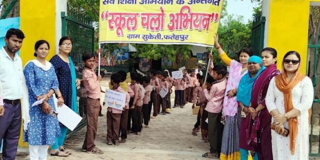फतेहपुर। ग्राम पंचायत सुकेती में नए शैक्षिक सत्र के तहत अधिक से अधिक बच्चों का नामांकन सुनिश्चित करने के उद्देश्य से प्राथमिक एवं उच्च प्राथमिक विद्यालय के शिक्षकों व छात्र-छात्राओं द्वारा एक विशाल एवं भव्य जागरूकता रैली निकाली गई। रैली में दोनों विद्यालयों के अध्यापकों और बच्चों ने उत्साहपूर्वक भाग लिया। रैली के दौरान साउंड सिस्टम के माध्यम से पूरे गांव में घूम-घूमकर नामांकन संबंधी घोषणाएं की गई। अभिभावकों को अपने बच्चों का शीघ्र नामांकन कराने के लिए प्रेरित किया गया। छात्र-छात्राओं ने आकर्षक नारों एवं गीत-संगीत के जरिए लोगों को जागरूक किया। साथ ही सरकार द्वारा संचालित विभिन्न योजनाओं की जानकारी भी ग्रामीणों को दी गई। बताया गया कि विगत वर्षों में प्राथमिक विद्यालय सुकेती एवं उच्च प्राथमिक विद्यालय सुकेती में 250-250 से अधिक छात्र-छात्राएं अध्ययनरत रहे हैं। दोनों विद्यालयों में बेहतर शैक्षिक वातावरण के साथ सभी आवश्यक सुविधाएं उपलब्ध हैं। उच्च प्राथमिक विद्यालय में स्मार्ट क्लास रूम एवं कंप्यूटर शिक्षा की भी समुचित व्यवस्था है। रैली में प्राथमिक विद्यालय सुकेती से प्रधानाध्यापिका साधना शर्मा, विवेक सिंह, कमलेंद्र सिंह, मनीष कुमार अवस्थी, रचना अग्रहरि, मंजरी सिंह, जितेंद्र बहादुर सिंह, आरती राव, माया देवी, अशोक कुमार, शुभी, राजेंद्र सिंह लोधी सहित अन्य स्टाफ मौजूद रहा। वहीं उच्च प्राथमिक विद्यालय से इंचार्ज प्रधानाध्यापिका अजेता सिंह, अभिषेक कुमार, हिमांशु कुमार एवं कल्पना देवी ने सहभागिता की। रैली विद्यालय परिसर से प्रारंभ होकर पूरे गांव का भ्रमण करते हुए पुनः विद्यालय पहुंचकर संपन्न हुई।