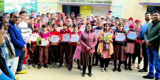 फतेहपुर। राष्ट्रीय आविष्कार अभियान के अंतर्गत विकास खण्ड ऐरायां में ब्लॉक स्तरीय क्विज प्रतियोगिता का आयोजन खण्ड शिक्षा अधिकारी ऐरायां रत्नामणि मिश्रा के नेतृत्व में किया गया। खण्ड शिक्षा अधिकारी ने बताया कि राष्ट्रीय आविष्कार अभियान कार्यक्रम के अंतर्गत विकास खण्ड के 41 उच्च प्राथमिक एवं कंपोजिट विद्यालय के छात्र-छात्राओं ने क्विज प्रतियोगिता में प्रतिभाग किया।