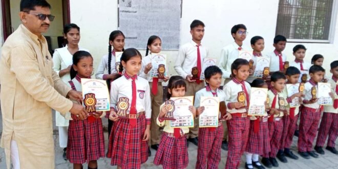 फतेहपुर। सांई सिटी इंटर कॉलेज/मां सरस्वती ज्ञान मंदिर सांई विहार जयरामनगर में वार्षिक परीक्षाफल वितरण किया गया। परीक्षाफल देखकर बच्चे प्रफुल्लित हो गए। मेधावी बच्चों को विद्यालय प्रबंधक पवन सिंह गौर ने शील्ड व मेडल देकर सम्मानित किया। मेधावी बच्चों में आर्विराज, प्रभात, दीपक, प्रिया यादव, प्रिंस यादव, अनाया, शगुन, लवी, वसु यादव, साक्षी, सीनू, कुमकुम, अराफात, एरम, राज मिश्रा, हर्ष, आदित्य, पीहू, सात्विक, अगम सिंह, अंश चंद्रपाल, रिफा, युवराज सिंह, सृष्टि आदि रहे। प्रबंधक श्री सिंह ने बच्चों को लगन व मेहनत से सफलता प्राप्त करने की प्रेरणा दी। विद्यालय के प्रधानाचार्य अरविंद कुमार अभिभावकों का आभार प्रकट किया। बच्चों के उज्जवल भविष्य की कामना की। इस मौके पर संजय सिंह, चंद्रप्रकाश श्रीवास्तव, रावेंद्र सिंह, रवि सिंह, अतुल कुमार, रेखा श्रीवास्तव, राजेश वर्मा, जयश्री, मनोरमा, पूजा त्रिवेदी, राजेंद्र प्रसाद रहे।