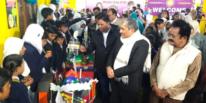 – विज्ञान प्रदर्शनी में लगे स्टालों का अवलोकन करते चेयरमैन राजकुमार मौर्य।