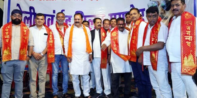 – समारोह के दौरान गणमान्य व्यक्तियों को सम्मानित करते आयोजक।