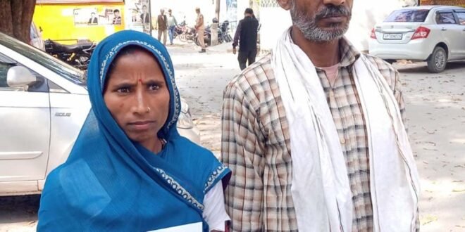– एसपी को शिकायती पत्र देने जाते पीडित।