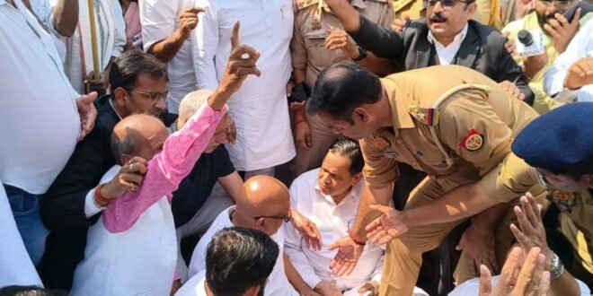 जिस दौरान प्रदेश कांग्रेस अध्यक्ष श्री अजय राय जी को योगी सरकार की पुलिस द्वारा रोका दिया गया और उन्हें गिरफ्तार कर पुलिस लाइन भेज दिया गया है।गिरफ्तारी के दौरान प्रदेश कांग्रेस अध्यक्ष मा0 श्री अजय राय जी के साथ पूर्व मंत्री श्री नसीमुद्दीन सिद्दकी, श्री राकेश कुमार राठौर-सांसद सीतापुर सहित भारी संख्या में कांग्रेसजन शामिल रहे।
