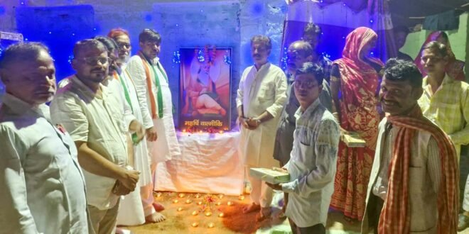 महर्षि बाल्मीकि के चित्र पर पुष्प अर्पित करते कांग्रेसी।