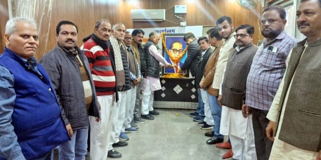 – बाबा साहब के चित्र पर पुष्प अर्पित करते कांग्रेसी।