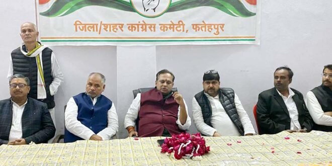 फतेहपुर। आगामी चौदह दिसंबर को दिल्ली में होने वाली नेता विपक्ष राहुल गांधी की रैली को लेकर तैयारियों के बाबत आज पार्टी के राष्ट्रीय सचिव नीलांसु चतुर्वेदी के जनपद आगमन पर जिला व शहर कांग्रेस के पदाधिकारियों ने उनका जोरदार स्वागत किया। जिला कांग्रेस कार्यालय सईद बिल्डिंग शांतीनगर में आयोजित सभा में पार्टी के तमाम वक्ताओं ने अपने विचार रखे। कार्यक्रम की अध्यक्षता कर रहे जिलाध्यक्ष महेश द्विवेदी ने कहा कि राहुल की रैली को सफल बनाने हेतु जनपद से लगभग तीन सौ लोग दिल्ली कूच करेंगे जिनमें तीस चार पहिया वाहन व एक बस जाएगी। इसके अतिरिक्त उन्होंने संगठन के साथ कार्य न कर रहे पूर्व पदाधिकारियों एवं कार्यकर्ताओं की आलोचना करते हुए कहा कि केवल चुनावी राजनीति करने वाले नेताओं को संगठन बिल्कुल तरजीह नहीं देगा यह निश्चित है। शहर अध्यक्ष मो0 आरिफ गुड्डा ने कहा कि आज हमें आवश्यकता है कांग्रेस को मजबूत करने की एवं देश का लोकतंत्र बचाने की न कि अपने को मजबूत करने की जिसमें जमीनी स्तर पर कार्य करने की जरूरत है परंतु कुछ लोग स्वार्थ्य बस पार्टी को महत्व न देकर संगठन को कमजोर करने का प्रयास कर रहे हैं। सभा में राष्ट्रीय सचिव एवं बुंदेल खंड प्रभारी नीलांसु चतुर्वेदी ने सभी कार्यकर्ताओं से अपील की कि रैली में अधिक से अधिक संख्या में दिल्ली पहुंच कर भाजपा सरकार द्वारा एसआईआर के बहाने जनता के काटे जा रहे मतों के विरुद्ध राहुल गांधी द्वारा किए जा रहे संघर्ष में उनका साथ निभाएं। कार्यक्रम में शेख एजाज अहमद, राजेंद्र शुक्ला, हिदायत उल्ला खां, देवी प्रकाश दुबे, माधुरी रावत, राजीव लोचन निषाद, उदित अवस्थी, राम नरेश, महराज, आदित्य श्रीवास्तव, अनुराग नारायण मिश्र, सुदेश पांडेय, रेखा पासवान, चौधरी मोइन राइन, आनंद सिंह गौतम, बृजेश मिश्रा, वीरेंद्र गुप्ता, अरुण जायसवाल, राम करन, आदि लोग उपस्थित रहे।