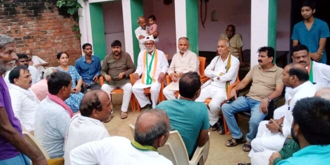 अजरौली गांव में परिजनों से वार्ता करते कांग्रेसी।