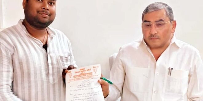– चेयरमैन को ज्ञापन सौंपते आवास-विकास कालोनी के सभासद।